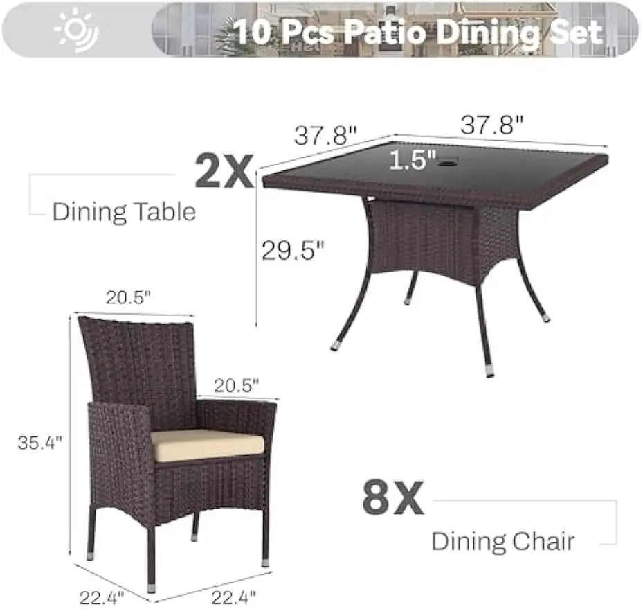 10 Piece Outdoor Dining Set,Rattan Patio Conversation Set of 8 Chairs,Patio Dining Table and Chairs w/Cushions,Sand