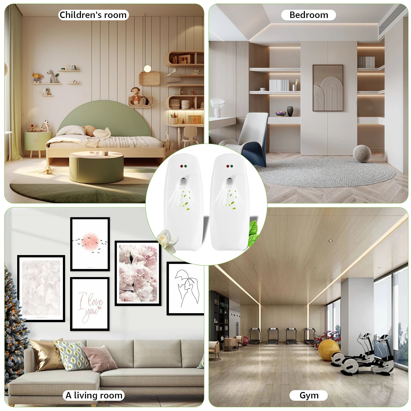 2Pcs Air Fresher Dispenser Wall-Mounted 300ML Liquid Automatic Perfume Spray WIth 3 Adjustable Mode for Home Fragrance Dispenser