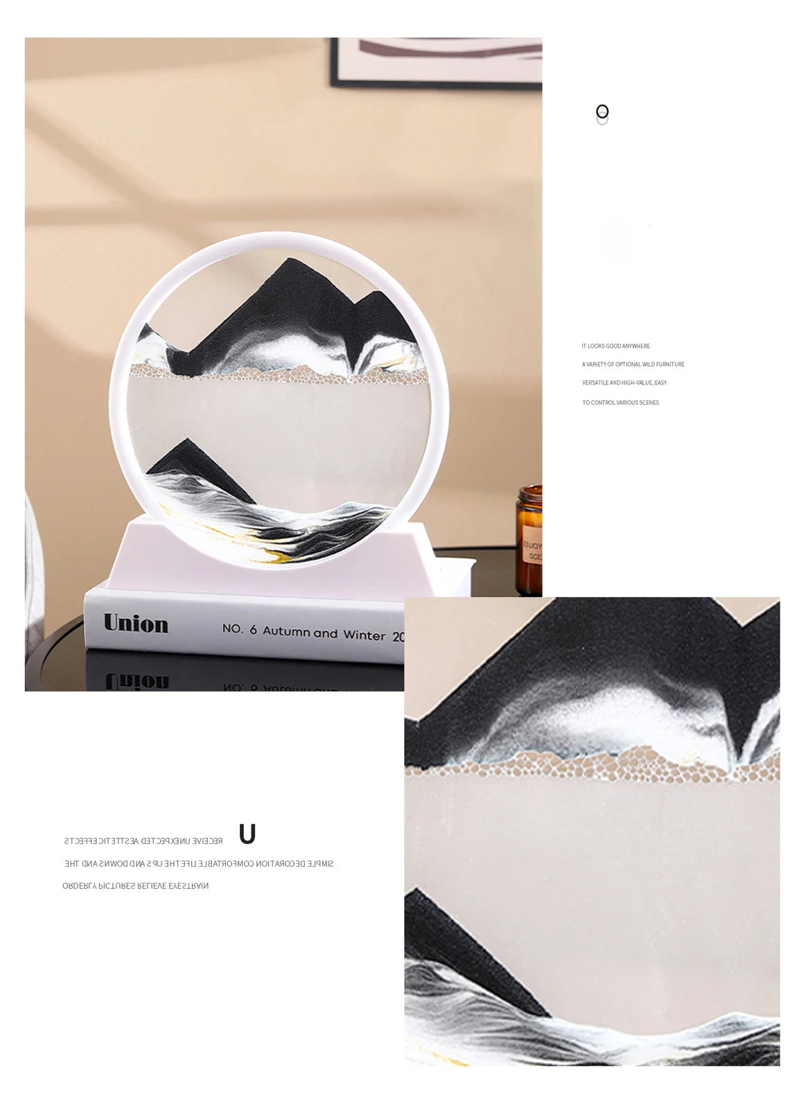 3D Sandscape Moving Sand Art Picture Quicksand Craft Round Glass Deep Sea Liquid Hourglass Flowing Sand Painting Home Decor Gift