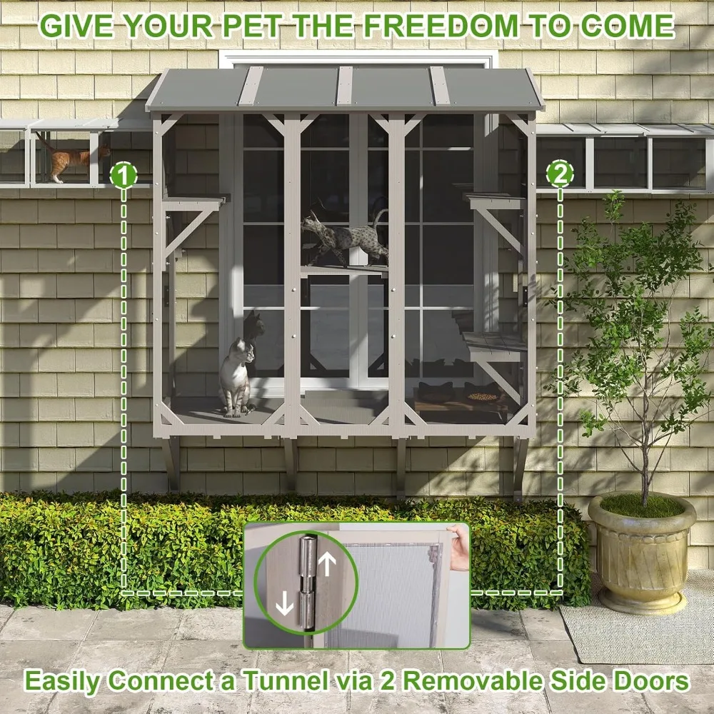 - 【EXPANDABLE FUN WITH EASY ACCESS】Equipped with 3 large doors and 2 removable tunnel ports, this catio for window allows DIY connection to tunnels. A great enrichment solution for 1–3 cats to explore, play, and reduce boredom.