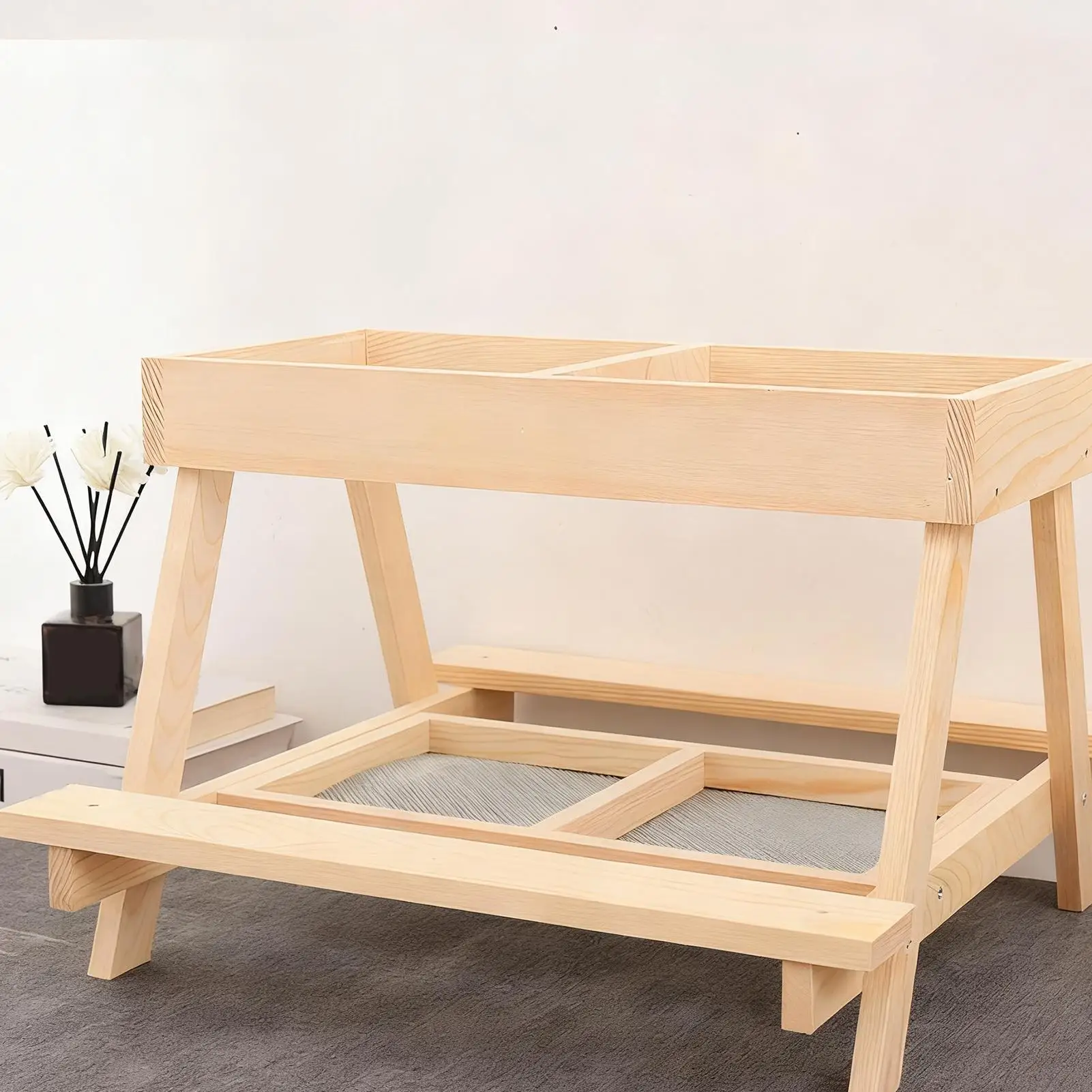 Chicken Picnic Table Double Layer Feeding Table Handmade Wooden Chicken Coop Feeder with 4 Grids for Poultry Ducks Turkeys Wild