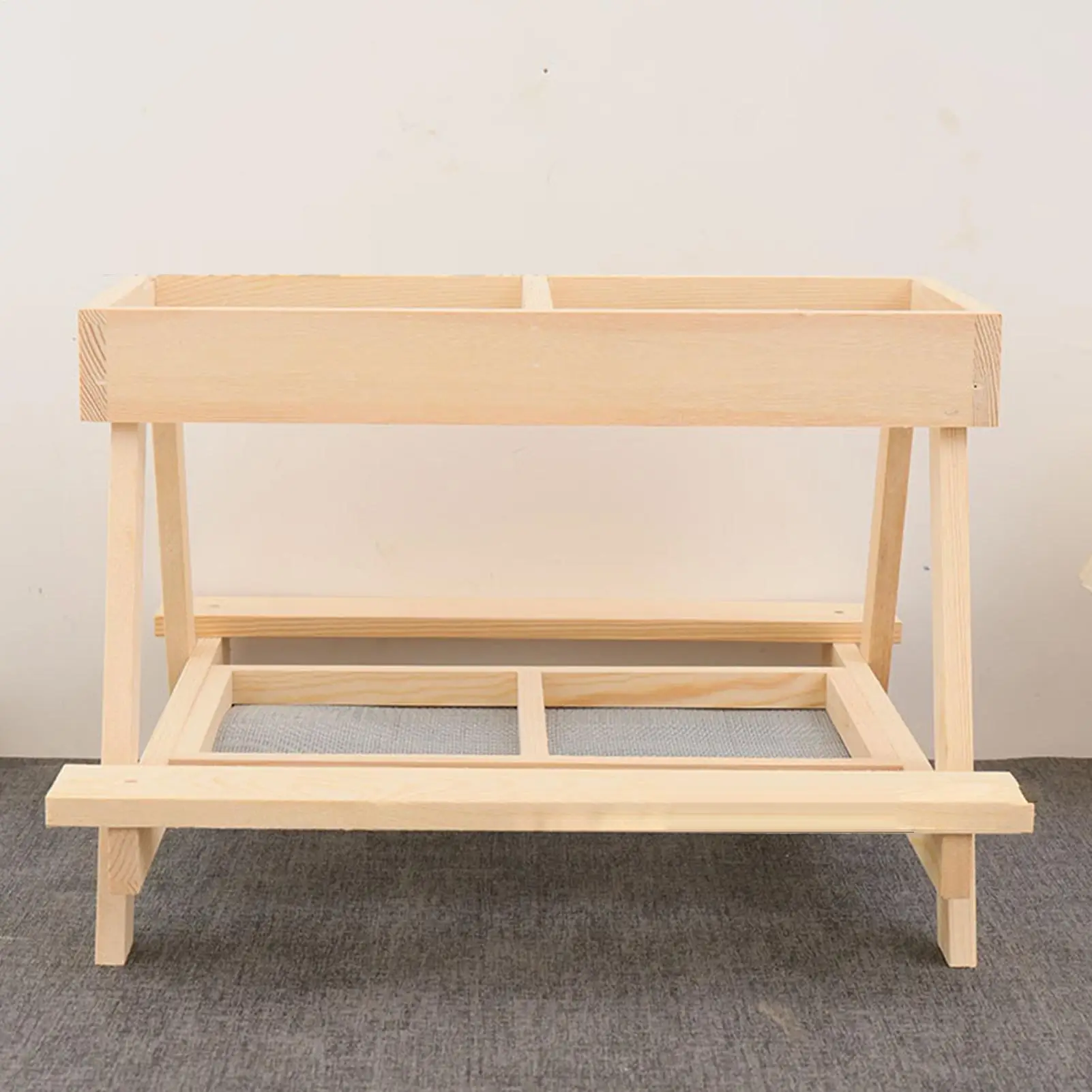 Chicken Picnic Table Double Layer Feeding Table Handmade Wooden Chicken Coop Feeder With 4 Grids For Poultry Ducks Turkeys Wild