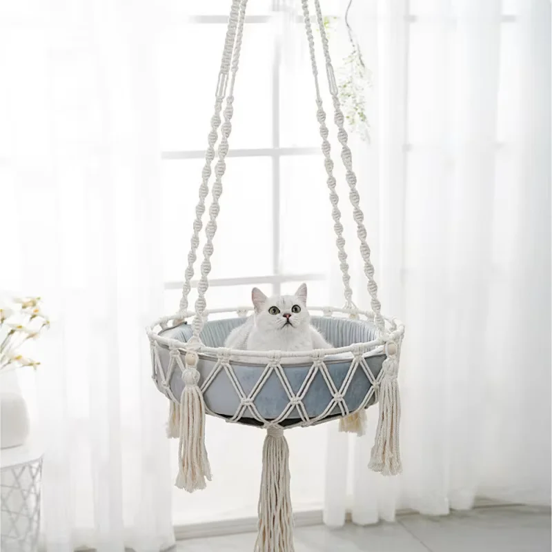 Pet Cat Hammock Cat Swing Hand Woven Cotton Rope Cats Hanging Basket Kitten Hanging String Den Indoor Pend Nest Pet Supplies