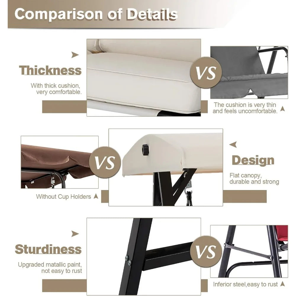 - 【Sturdy & Durable】The patio swings with canopy has a strong and stable triangular frame that can hold up to 600 lbs. The premium springs keep the patio swing secure and prevent noise while you're using it.