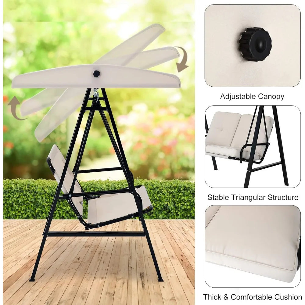 U-MAX 2 Seat Outdoor Patio Swing Chair for Adults, Porch Swings with Adjustable Canopy, Outside Swing Bench with Removable Cushi