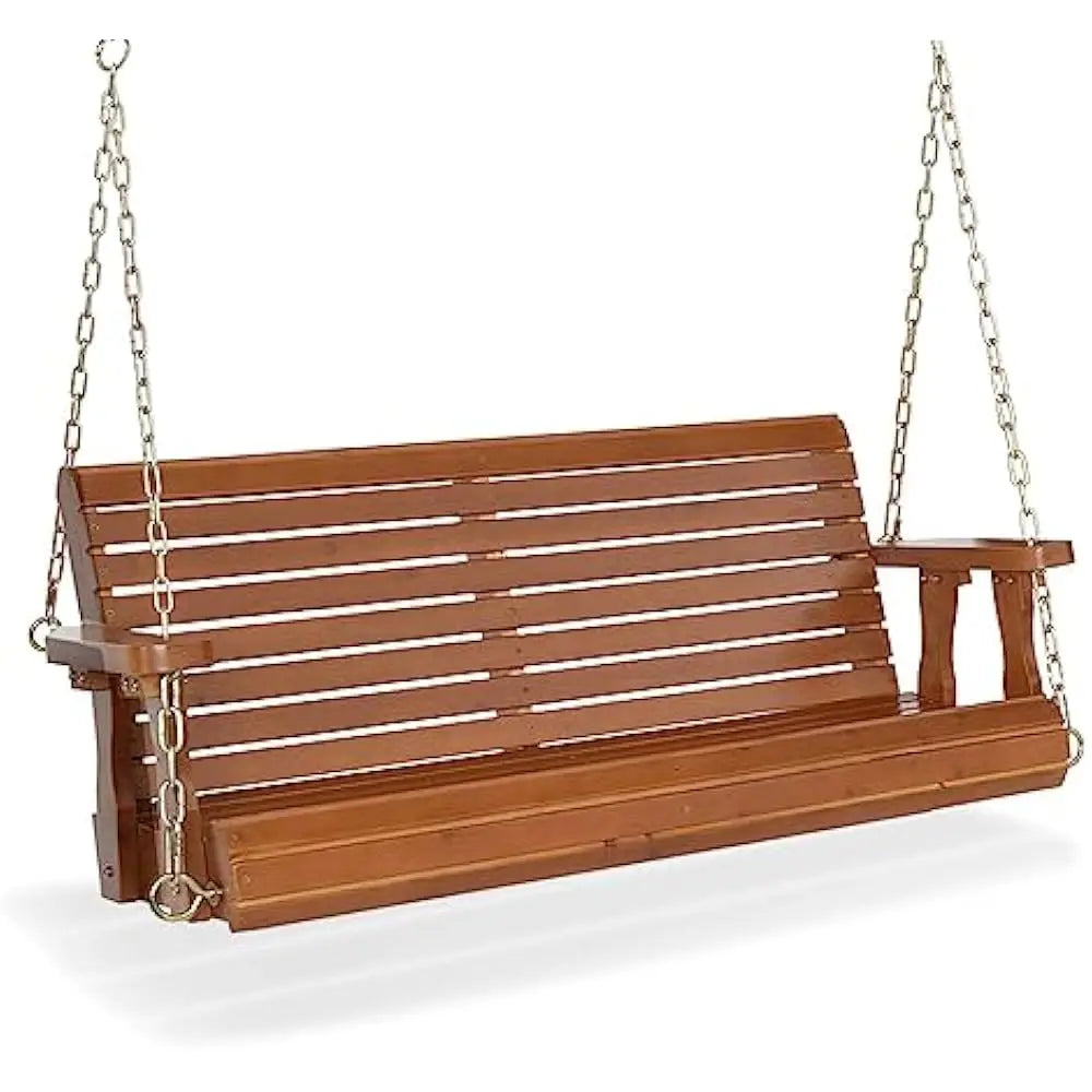 Upgraded wooden porch swings for courtyards and gardens, heavy-duty 880 pound outdoor swing benches with hanging chains
