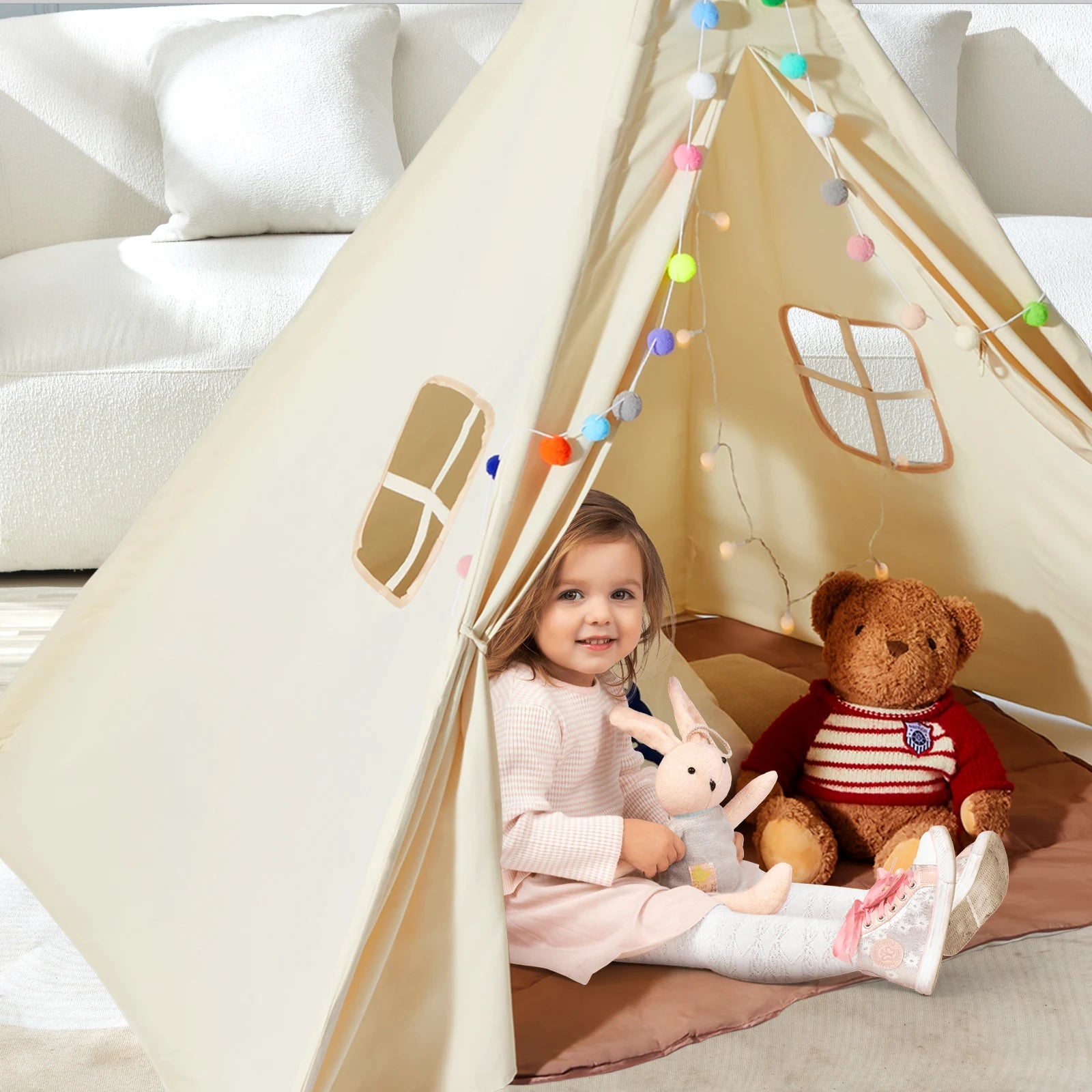 Beautiful & Practical Accessories: Our kids tent includes bonus plush decorative balls and a damp-proof mat. The plush decorative balls add a cute style and childish, and can be integrated into a variety of decorative styles. The mat provides additional comfort and protection for the tent.