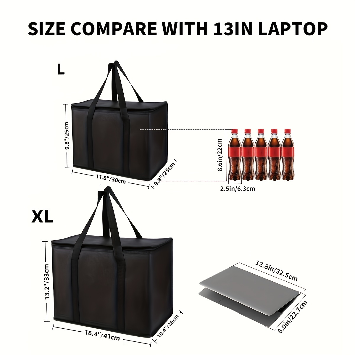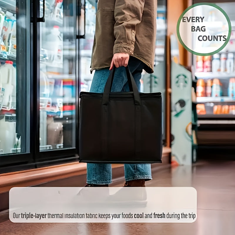 XL Insulated Bag: Keep items hot or cold for hours - grocery outdoor tote bag, reusable insulated cooler bag, portable, lightweight and sturdy with a zipper, suitable for camping, parties and festivals. Do not contact food.